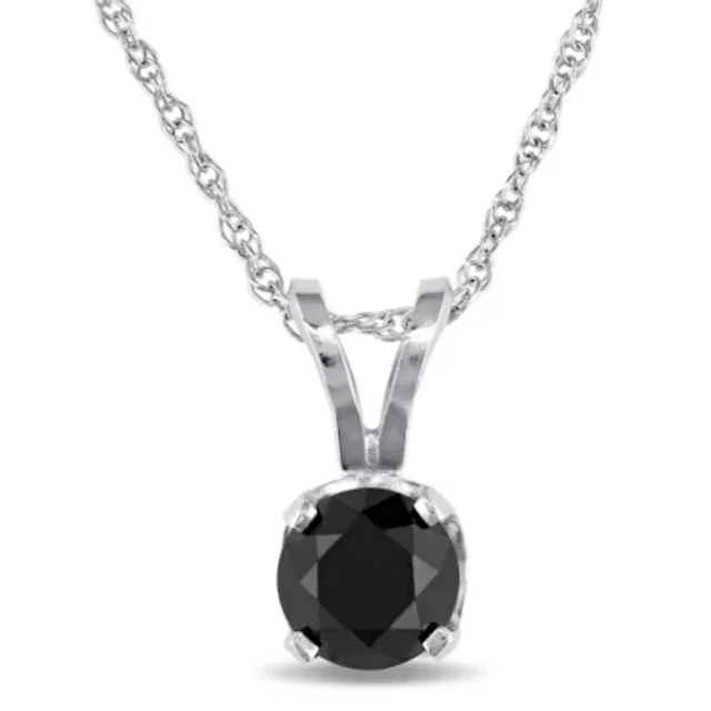 Womens 1/2 CT. Natural Black Diamond 10K White Gold Round 17 Inch Pendant Necklace