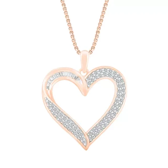 Womens 1/10 CT. T.W. Natural White Diamond 14K Rose Gold Over Silver Heart 18 Inch Pendant Necklace