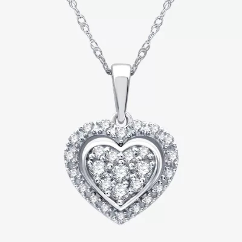 Womens 1/4 CT. T.W. Lab Grown White Diamond Sterling Silver Heart 18 Inch Pendant Necklace