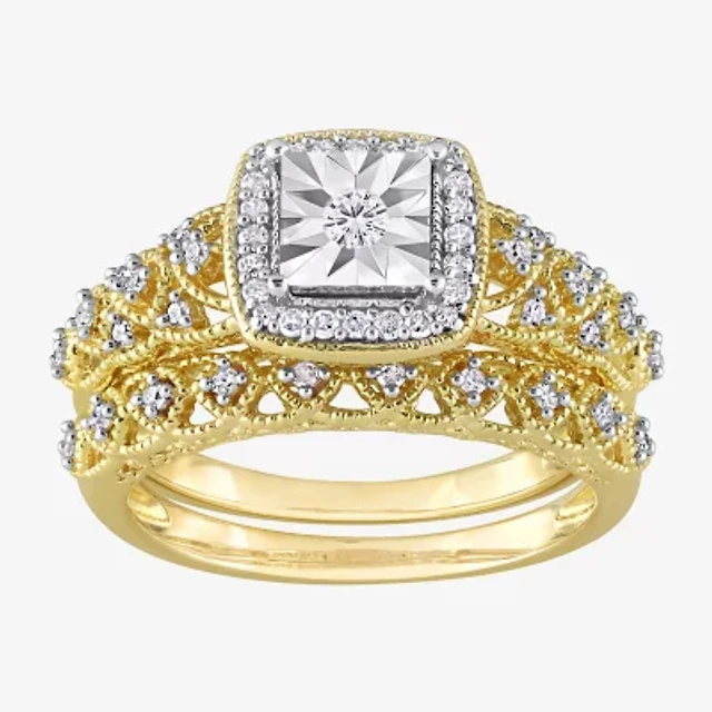 Womens 1/4 CT. T.W. Natural White Diamond 10K Gold Cushion Side Stone Halo Bridal Set