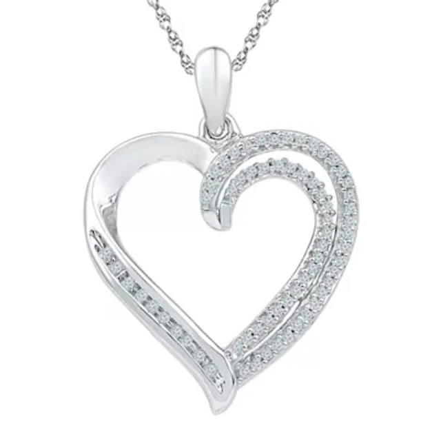 Womens 1/4 CT. T.W. Natural White Diamond Sterling Silver Heart 18 Inch Pendant Necklace