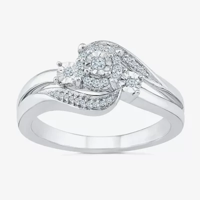 Womens 1/8 CT. T.W. Natural White Diamond Sterling Silver Round Side Stone Halo Promise RingWomens 1/8 CT. T.W. Natural White Diamond Sterling Silver Round Side Stone Halo Promise RingWomens 1/8 CT. T.W. Natural White Diamond Sterling Silver Round Side Stone Halo Promise Ring