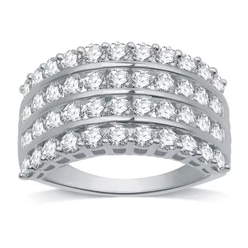 Celebrate a special anniversary in style with this sparkling showstopper ring from the Modern Bride collection. Crafted from 10K White Gold, this raised ring has 4 rows of round-cut natural diamonds in a channel setting for 2 carats total weight.
