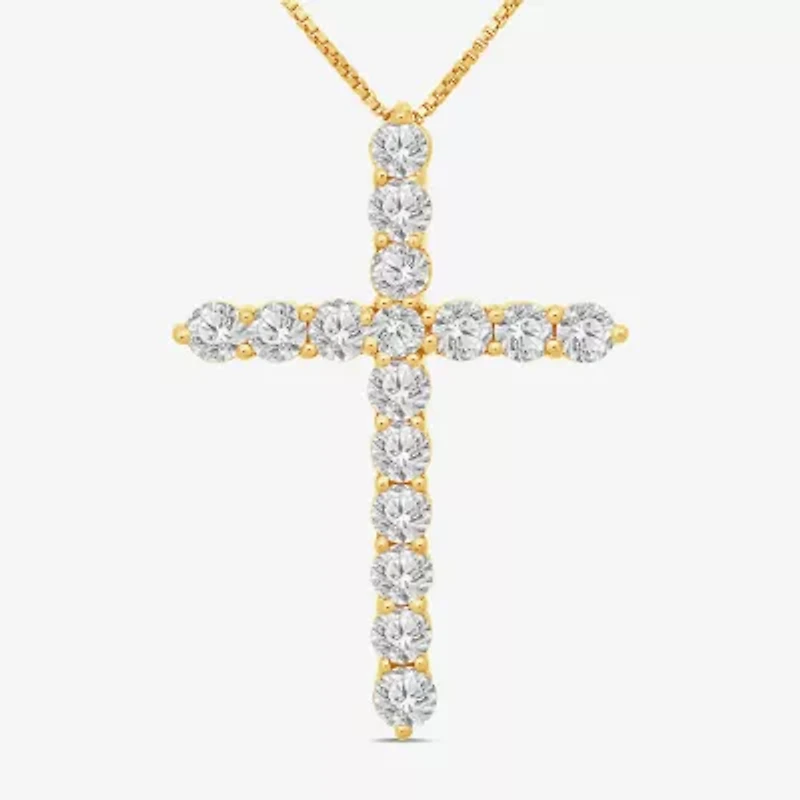 Womens 2 CT. T.W. Natural White Diamond 10K Gold Cross 18 Inch Pendant Necklace