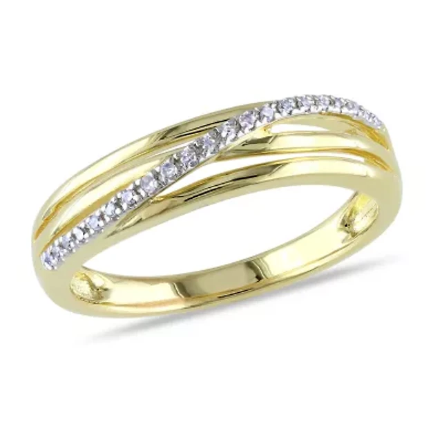 Womens 2MM Diamond Accent Natural White Diamond 10K Gold Circle Bypass Band