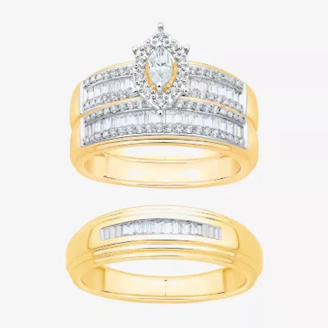 Womens 1/2 CT. T.W. Natural White Diamond 10K Gold Marquise Side Stone Halo Bridal Set