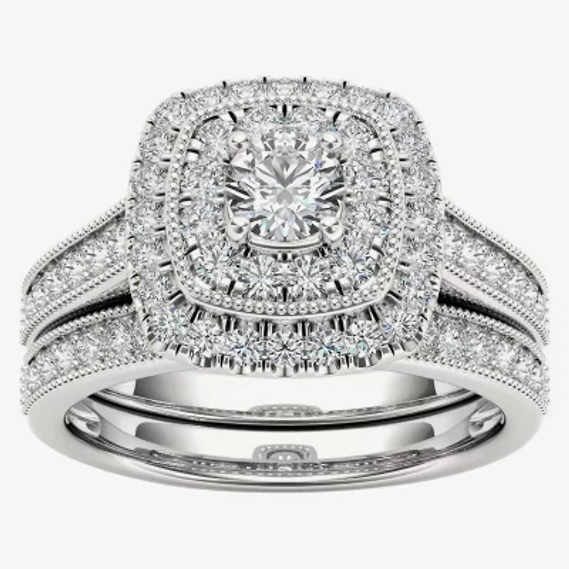 Womens 3/4 CT. T.W. Natural White Diamond 14K Gold Cushion Halo Bridal Set