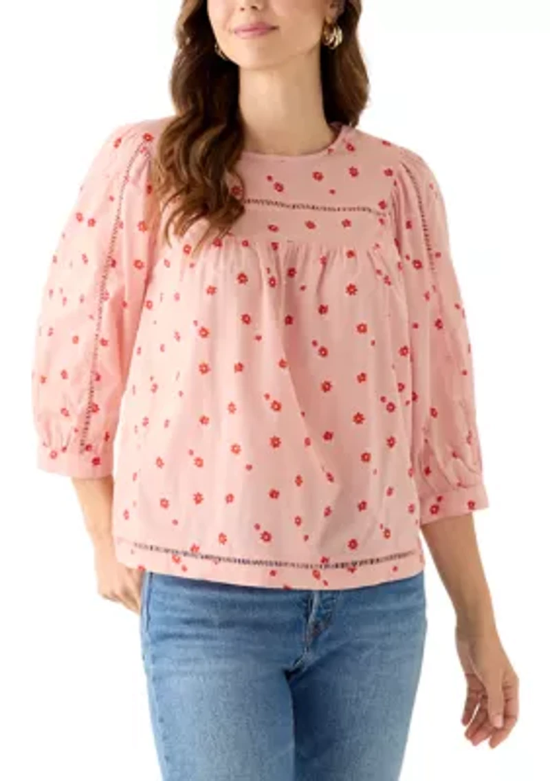 Add effortless charm to your wardrobe with this Wonderly top. Designed with a relaxed swing silhouette and a vibrant allover print, this top is beautifully accented with delicate embroidery for a handcrafted feel. Keyhole with button closure Crew neck 3/4 sleeves Imported Belk Exclusive Product Specifications 25" L Material & Care 100% cotton Machine washable