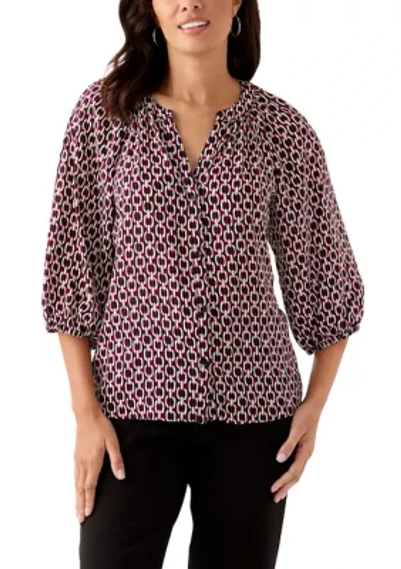 Women's 3/4 Sleeve Split Neck Button Front Top in Franklin, TN