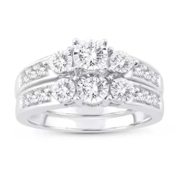 Womens 1 CT. T.W. Natural White Diamond 14K Gold Round Bridal Set