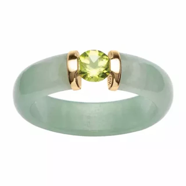 Womens 3MM Genuine Green Jade 14K Gold Over Silver Band