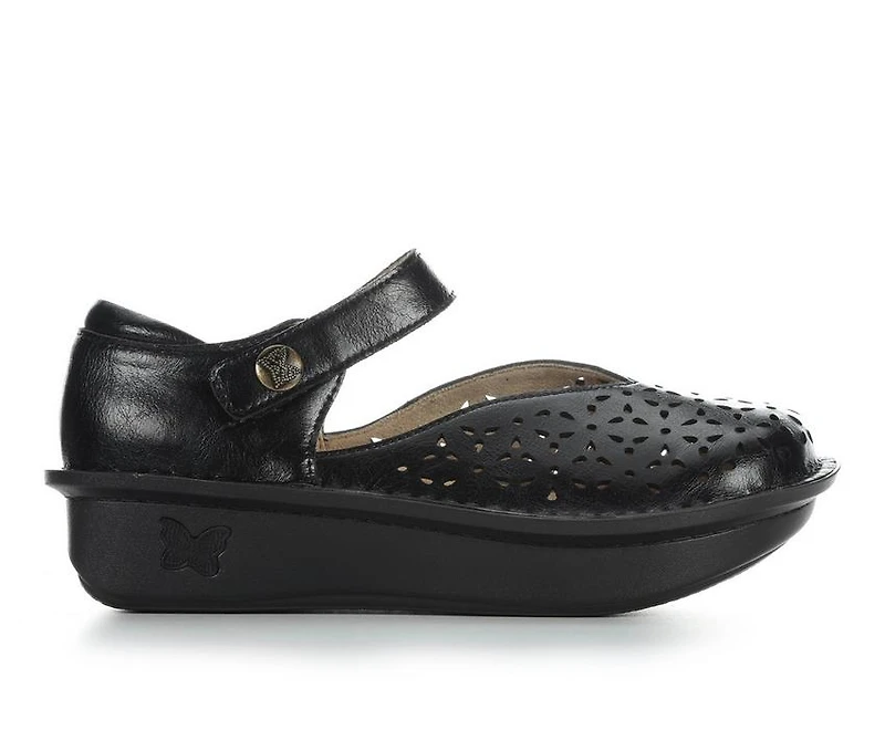 Women's ALEGRIA Tammy Platform Mary Janes Designed with signature Alegria comfort and standout detailing, this shoe blends everyday support with an eye-catching silhouette. The man-made upper features decorative cutout detailing that adds visual interest while allowing airflow for comfortable wear. An adjustable hook-and-loop strap across the instep provides a secure, customizable fit. The cushioned footbed supports all-day wear, while the raised outsole delivers a subtle lift with steady underfoot feel. This style works well for long days when comfort and personality matter equally.