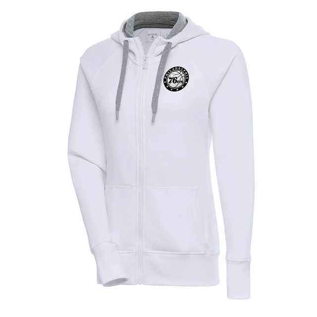 Women's Antigua Philadelphia 76ers Metallic Logo Victory Full-Zip Hoodie