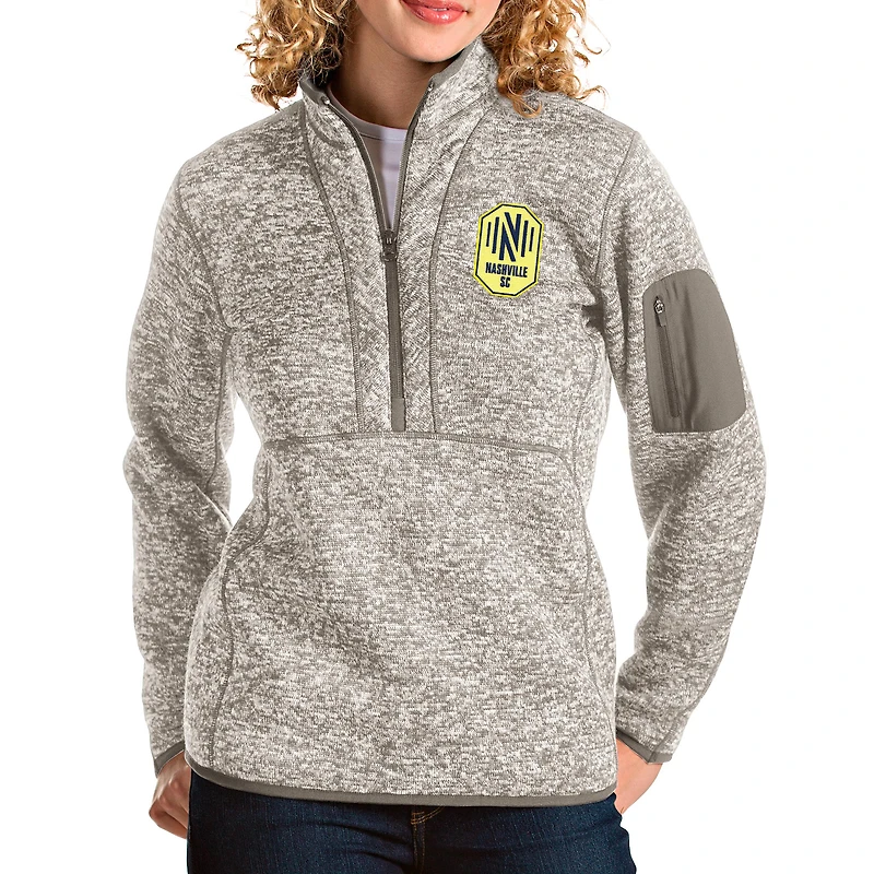 Represent your Nashville SC pride with the Women's Antigua Tan Nashville SC Fortune Quarter-Zip Pullover Jacket. This Nashville SC pullover is perfect for game day or any day. It's made of a soft, heathered polyester and features embroidered graphics. The welded sleeve pocket with zipper at the left arm is perfect for storing your phone or keys. Whether you're cheering on Nashville SC at Geodis Park or watching from home, this pullover will keep you comfortable and stylish all season long.