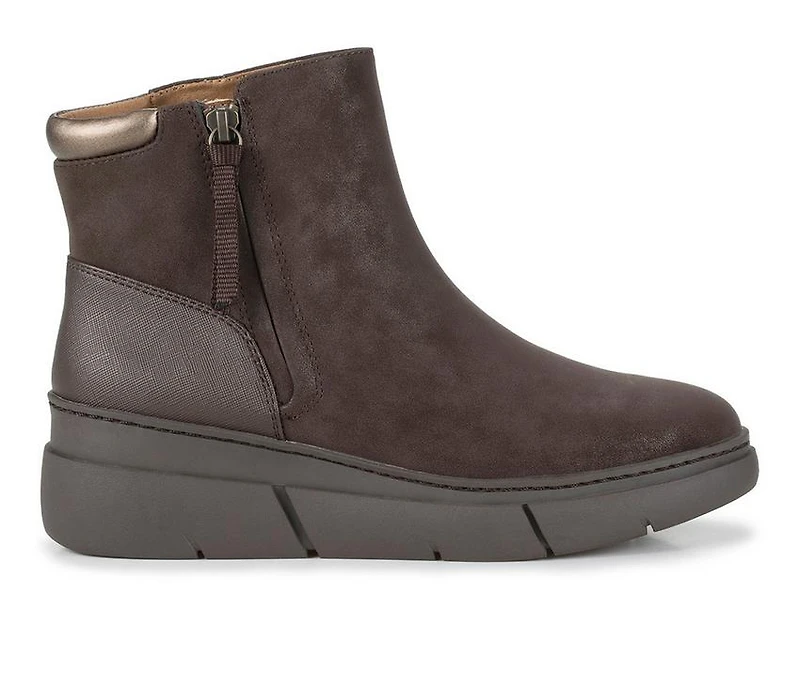 Women's Baretraps Lakelyn Wedge Bootie Booties Elevate your everyday with this stylish wedge boot designed to keep you looking sharp and feeling supported. The shimmering textured upper brings eye-catching appeal, while the low wedge heel gives just the right amount of lift without sacrificing stability. A side zipper allows for easy on and off, and the cushioned footbed makes these a go-to choice for all-day wear. With a sleek profile and subtle shine, this boot adds polish to any casual look.