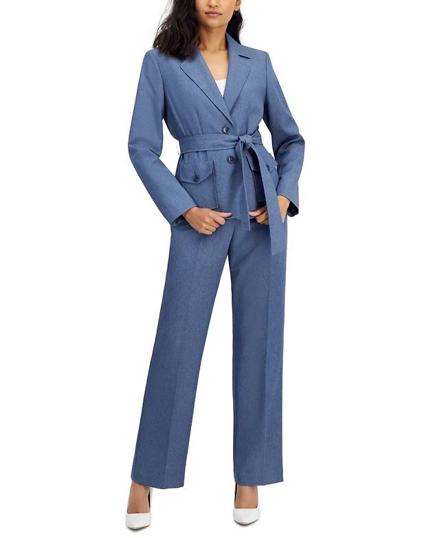Women's Belted Safari Jacket and Kate Pants Set, Regular & Petite Sizes