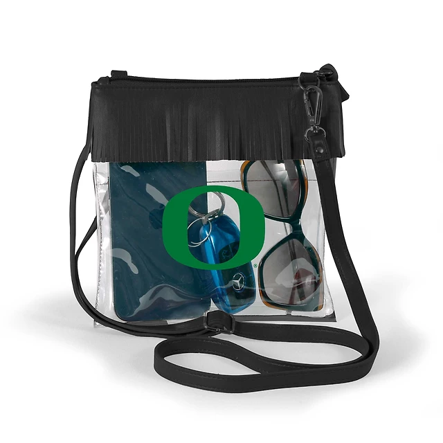 Women's Black Oregon Ducks Judyann Clear Crossbody with Fringe