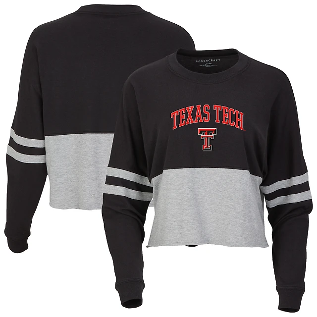 Women's Black Texas Tech Red Raiders Oversized Cropped Retro Long Sleeve T-Shirt