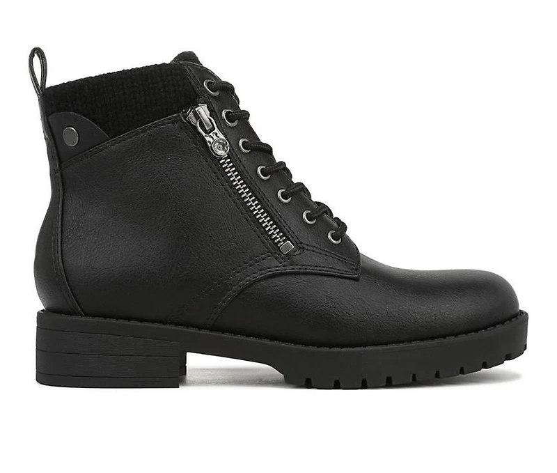 Women's Blowfish Malibu Deva Booties This ankle boot delivers moto-inspired edge with everyday versatility. A faux leather upper is paired with a sweater knit collar and tongue for added texture. A lace-up front works with an inside zipper to provide a secure fit. The round toe keeps the look wearable and balanced. Finished with a block heel and lug sole for bold style.
