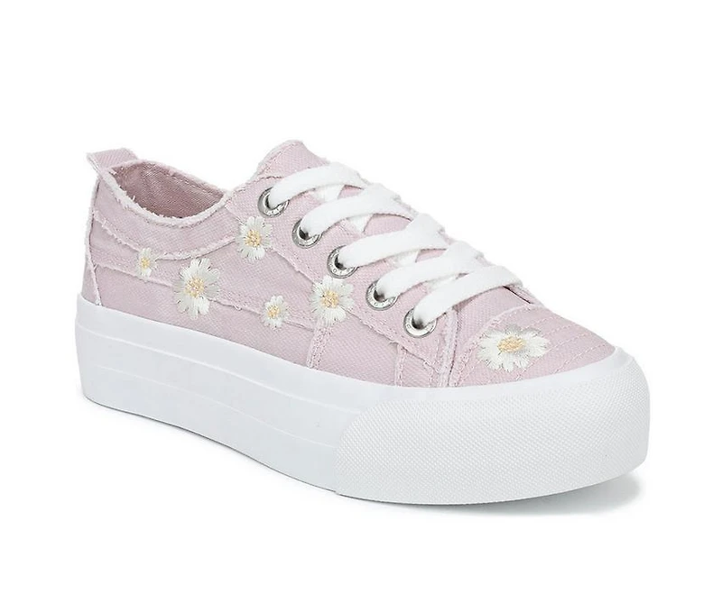 Women's Blowfish Malibu Sadie-Sun 8 Sneakers This platform sneaker brings playful detail to a classic silhouette. The upper features canvas, fabric, or microsuede-inspired materials with embroidered floral accents and quilted texture. A lace-up closure with metal eyelets provides a secure fit. The round toe keeps the design wearable for everyday styling. Finished with a bold platform sole.