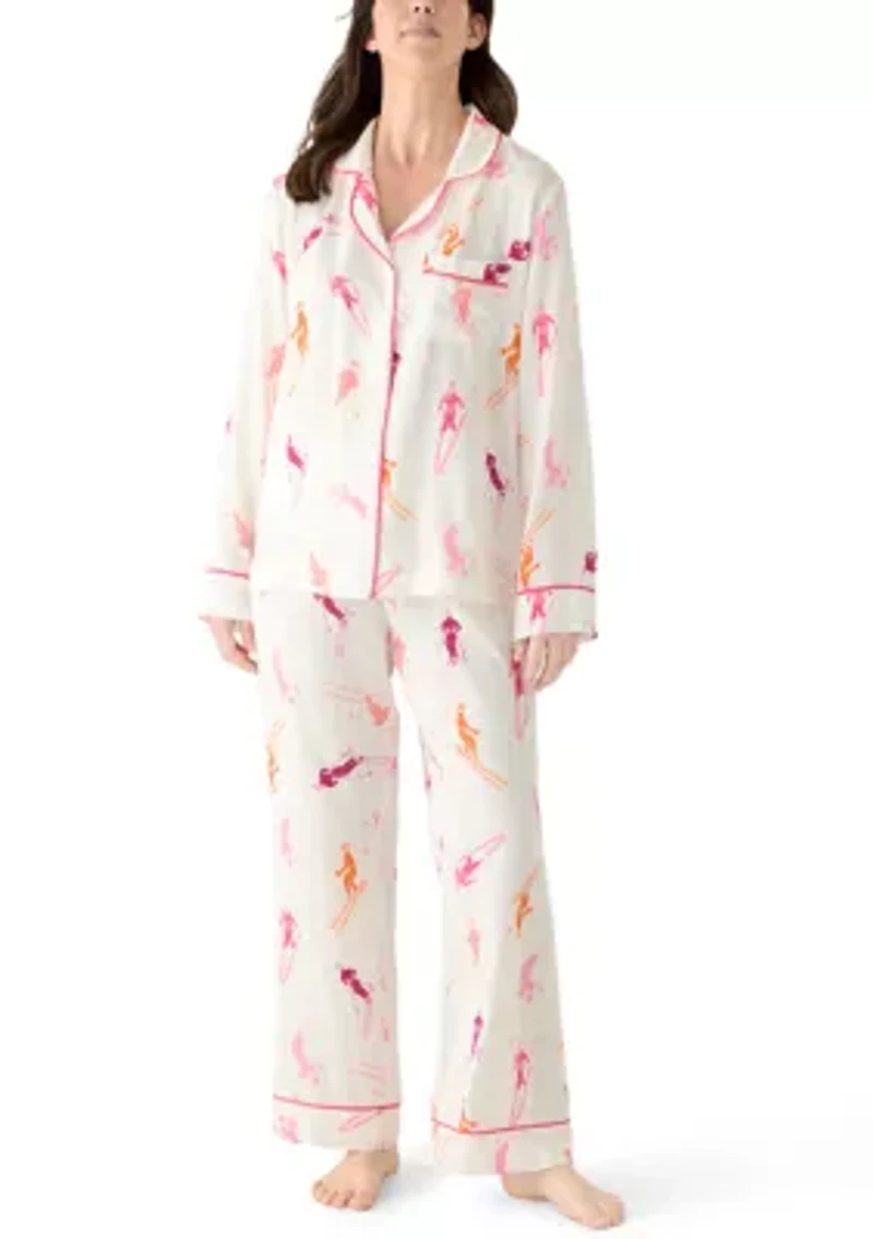 Drift into comfort with the Katie Kime pajama set, featuring a soft long‑sleeve top and matching pants adorned with a delicate bird motif. 2-piece set Button closure Collared neck Long drop shoulder sleeves Imported Product Specifications 29" inseam Material & Care Cotton blend Machine washable