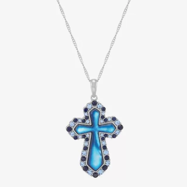 Womens Lab Created Blue Opal Sterling Silver Cross 18 Inch Pendant Necklace