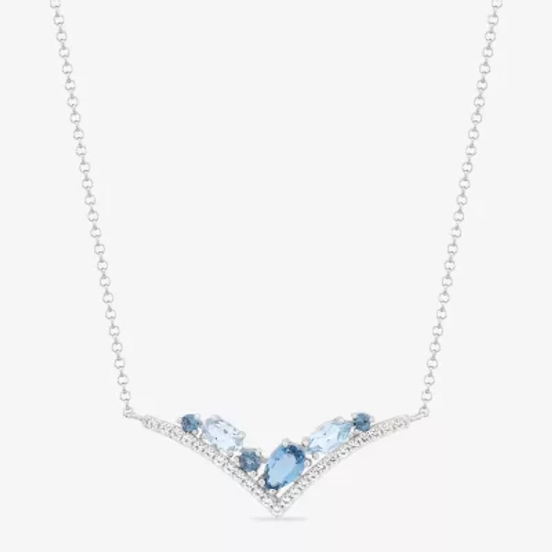 Womens Blue Topaz Sterling Silver 18 Inch Chevron Necklace
