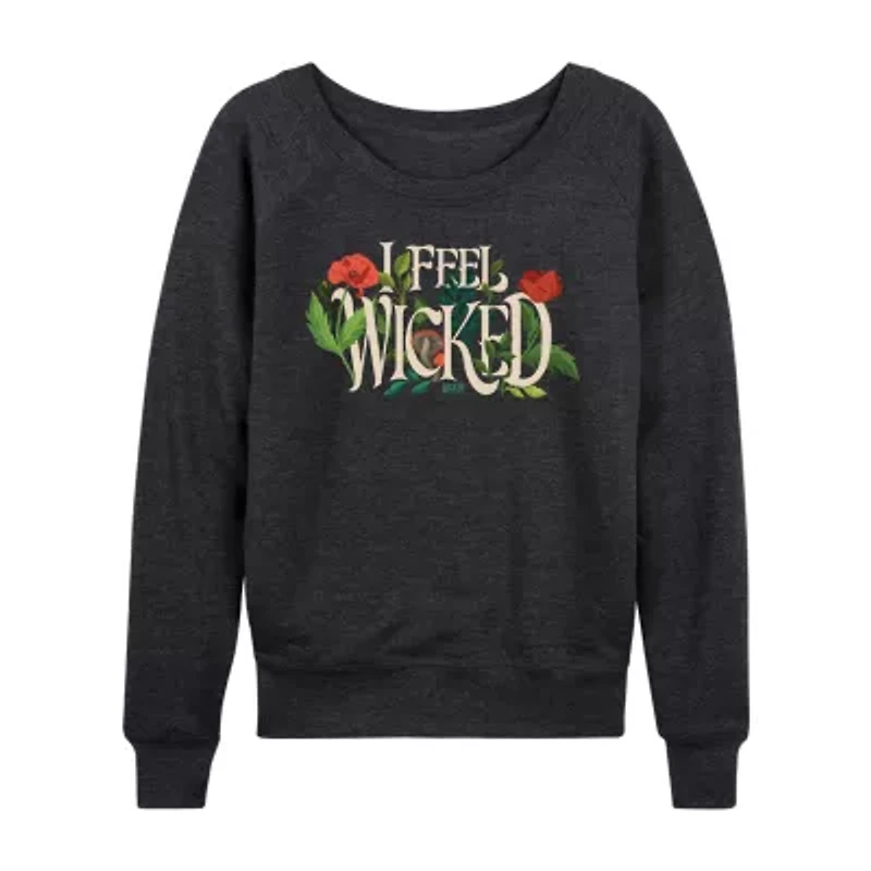Womens Boat Neck Long Sleeve Regular Fit Wicked Graphic T-Shirt