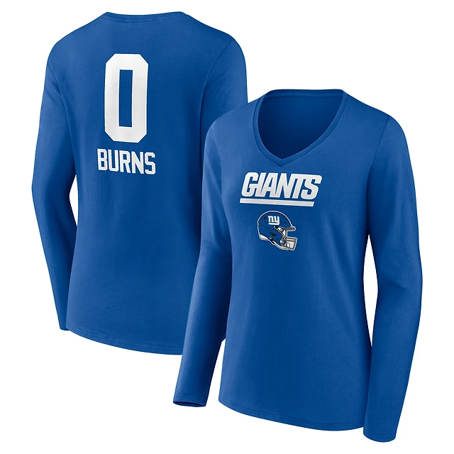 Women's Brian Burns Royal New York Giants Name & Number Team Wordmark Long Sleeve V-Neck T-Shirt