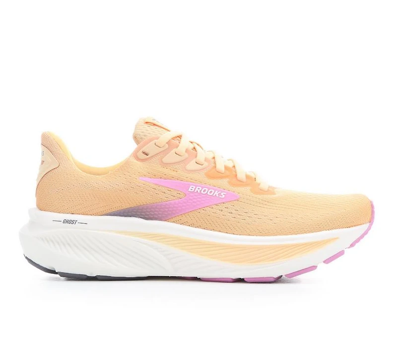 Women's Brooks Ghost 17 Running Shoes The Brooks Ghost 17 is designed for runners seeking a balance of comfort and performance. Its breathable mesh upper ensures airflow, while the nitrogen-infused DNA LOFT v3 cushioning provides a soft, responsive ride. With a 10mm heel-to-toe drop and refined flex grooves, this shoe promotes a natural stride, making it ideal for daily runs and long-distance training.