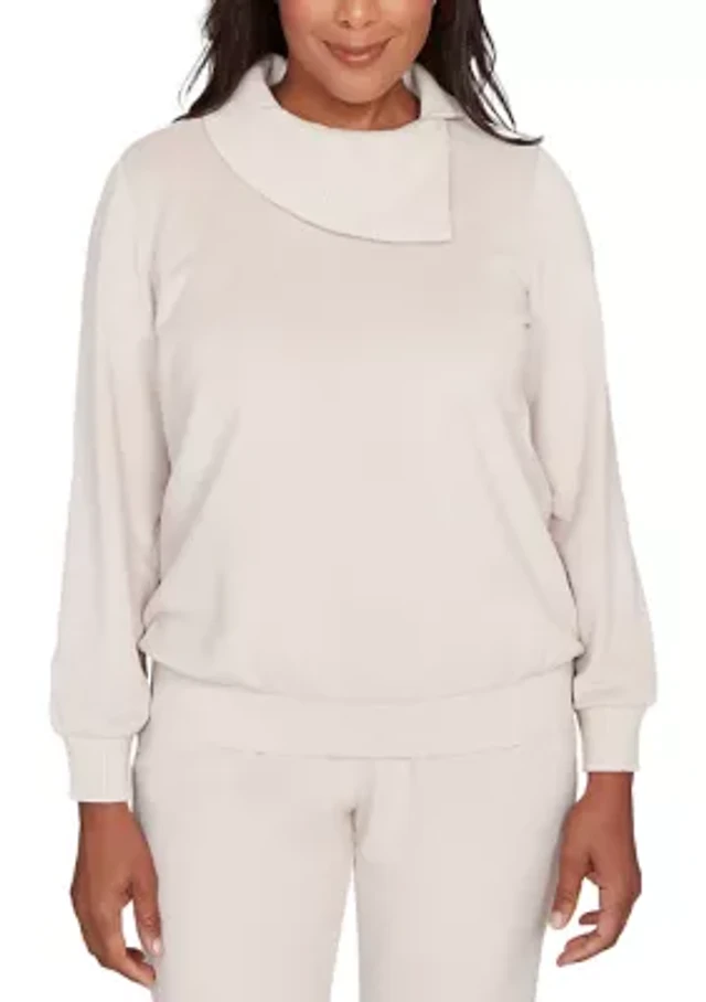 Alfred Dunner Calm Luxe Womens Cowl Neck Long Sleeve Sweatshirt
