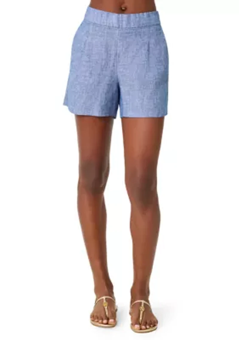 Experience style with these Lilly Pulitzer® mid-rise linen shorts. Crafted from breathable linen, they offer a relaxed fit ideal for daily wear. The elastic waistband ensures a comfortable and secure fit, while the 4" inseam provides a flattering silhouette. Elastic waistband Imported Product Specifications 4" inseam Material & Care Linen Machine washable