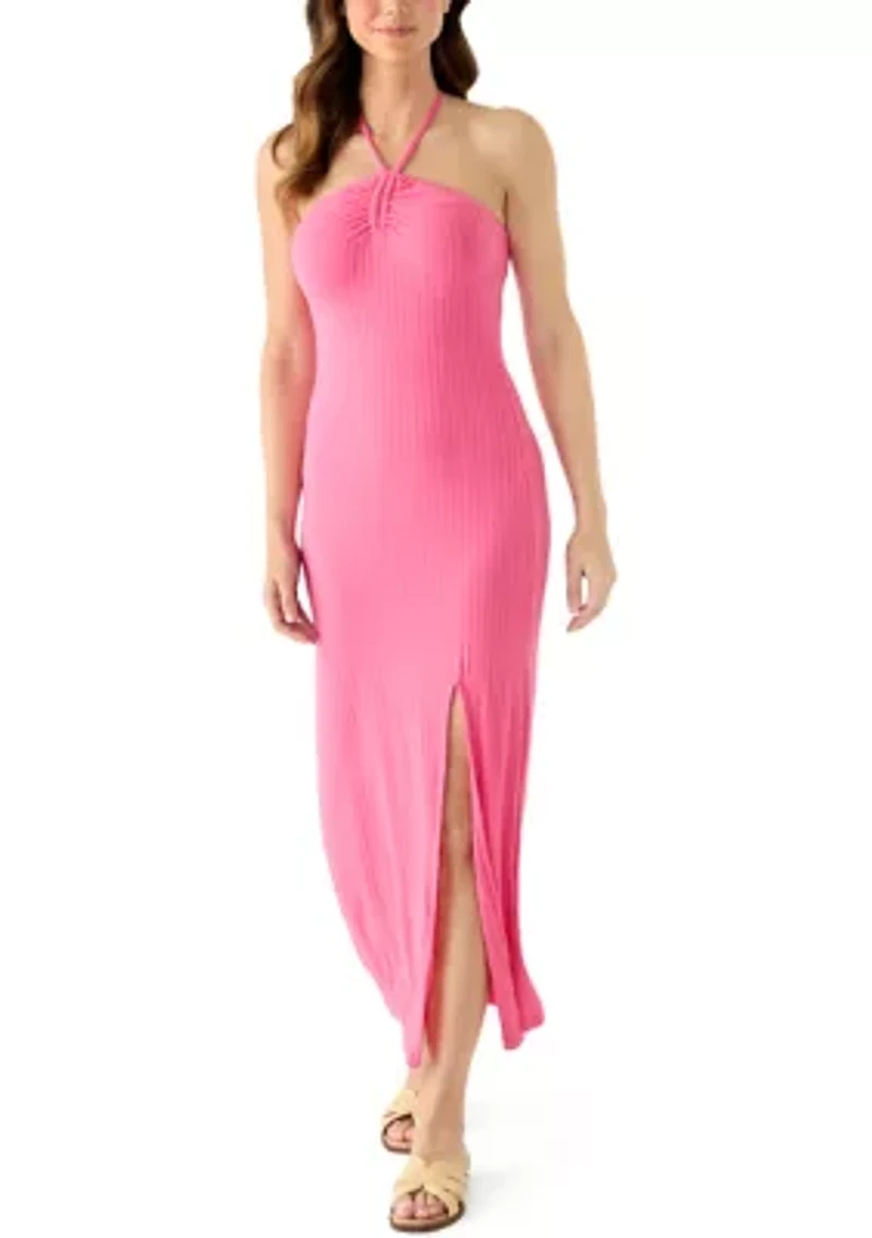 Women's Center Ruched Halter Knit Maxi Dress