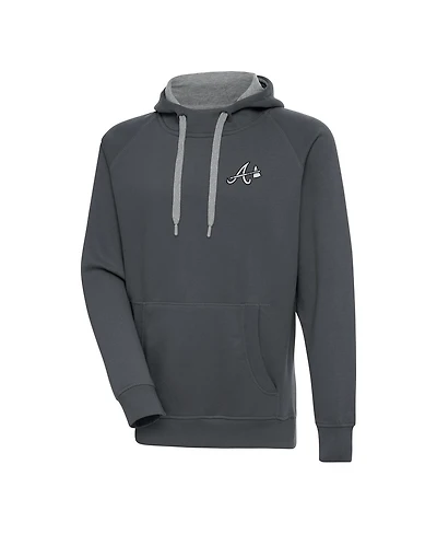 Antigua Men's Charcoal Atlanta Braves Metallic Victory Pullover Hoodie