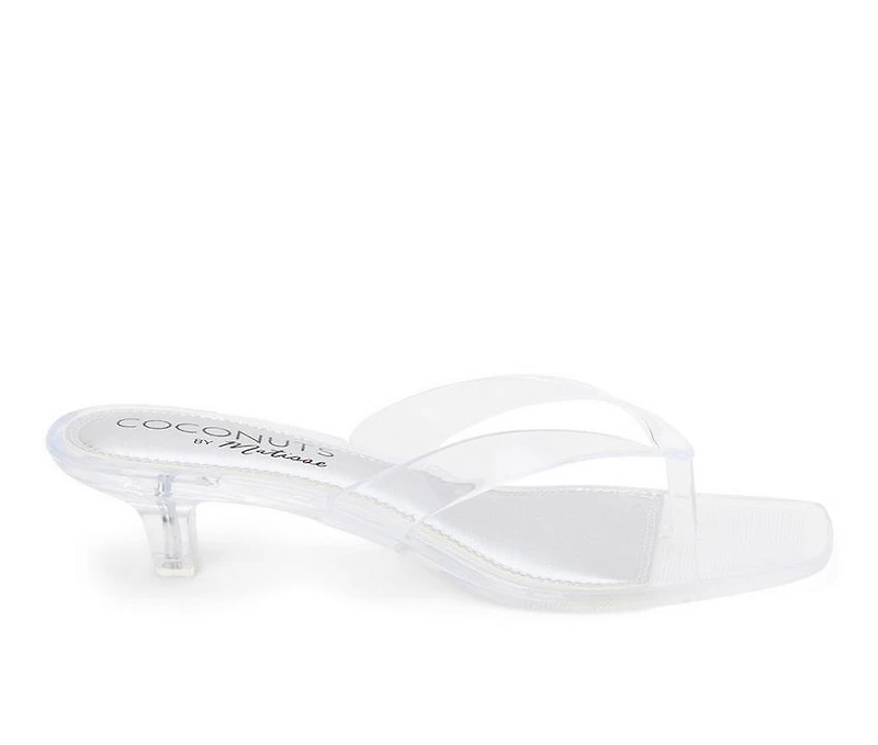Women's Coconuts by Matisse Margo Dress Sandals This heeled thong sandal brings playful styling to an elevated silhouette. The vegan jelly upper creates a glossy, modern look with open design. A square toe adds structure, while the 1.5-inch heel provides noticeable lift without overwhelming the profile. Designed as a slip-on style, this sandal offers easy wear with standout appeal.