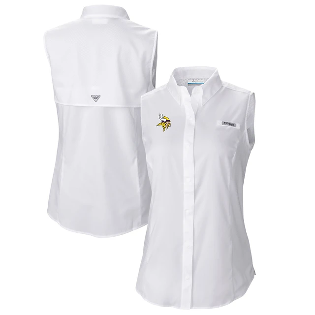 Women's Columbia White Minnesota Vikings PFG Tamiami Omni-Shade Sleeveless Button-Up Shirt
