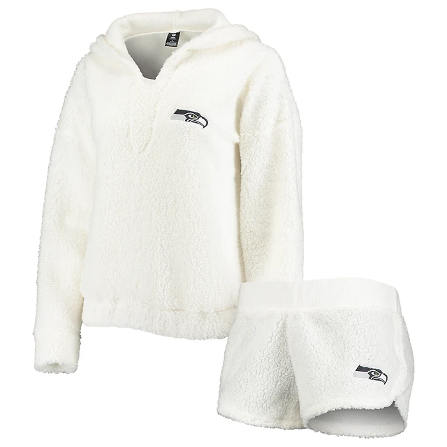Women's Concepts Sport Cream Seattle Seahawks Fluffy Hoodie Top & Shorts Set