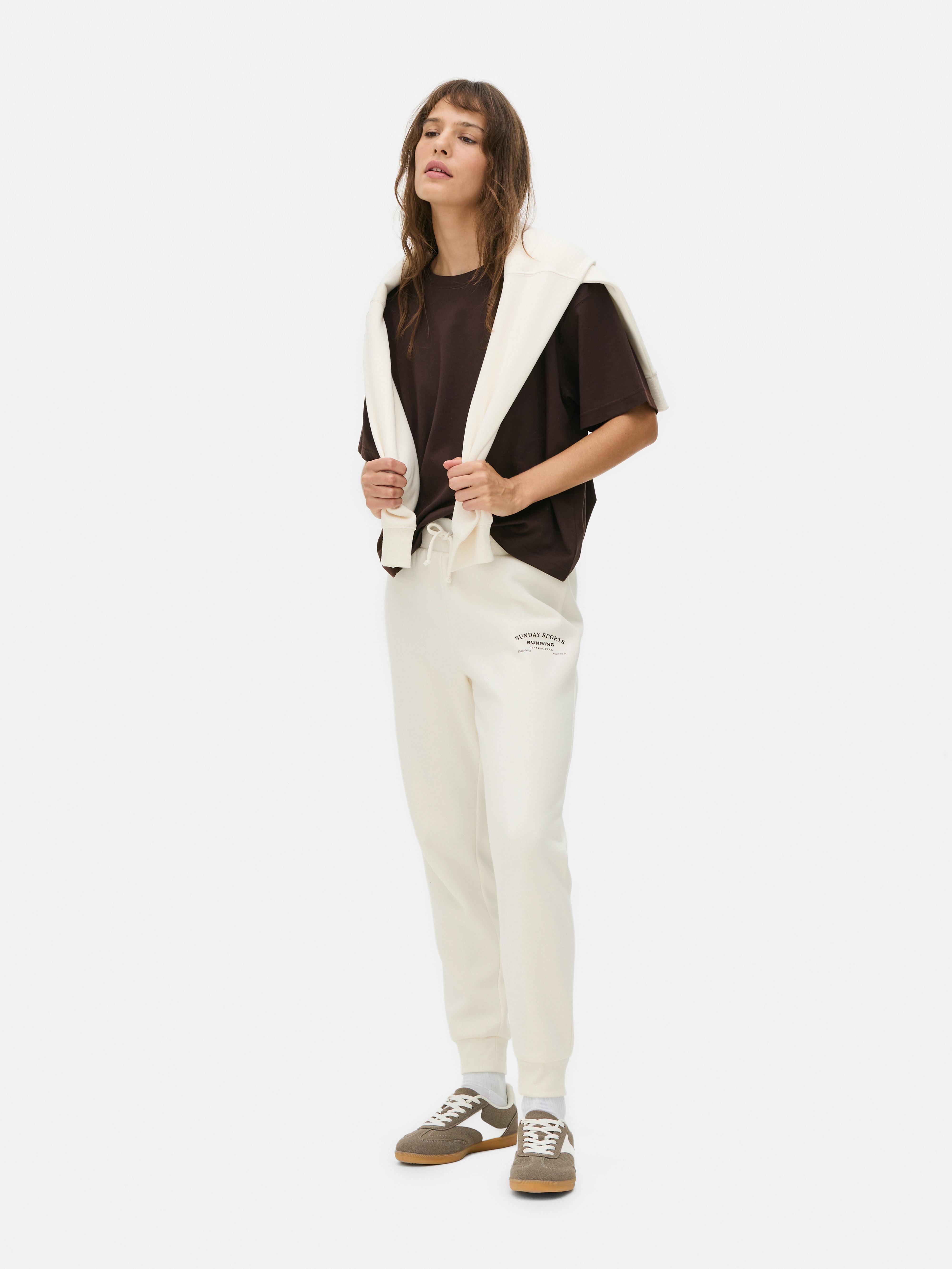 Women's Cream Skinny Print Sweatprints