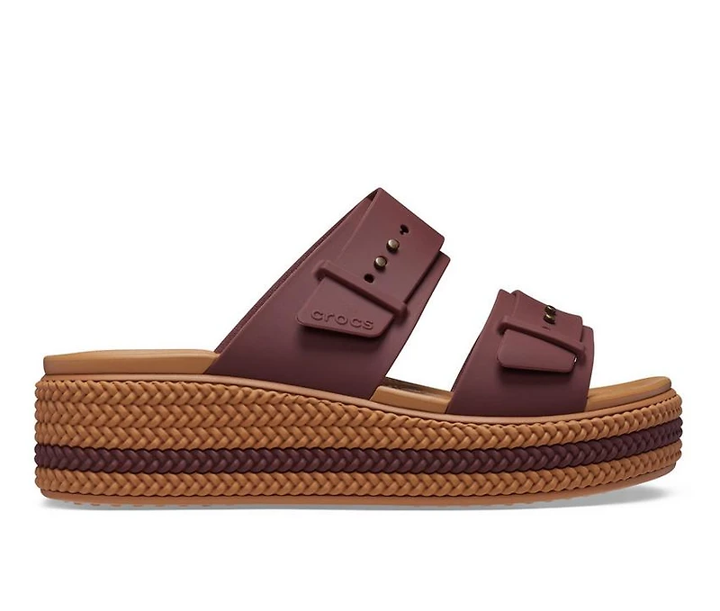 Women's Crocs Brooklyn Woven Buckle Wedge Sandals Featuring Crocs' iconic comfort technology, these sandals are designed to keep you feeling great all day long. The contoured footbed provides cushioned support, while the lightweight platform sole offers stability and traction with every step.