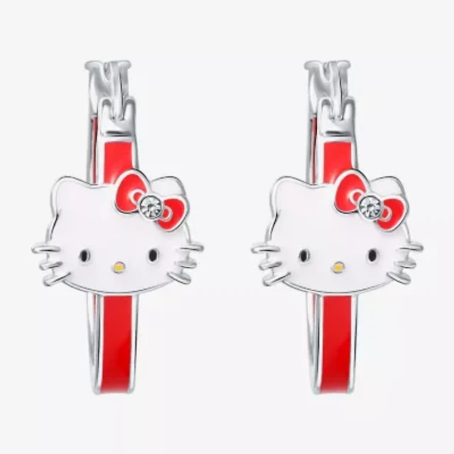 Hello Kitty Womens Cubic Zirconia and Enamel Hoop Earrings