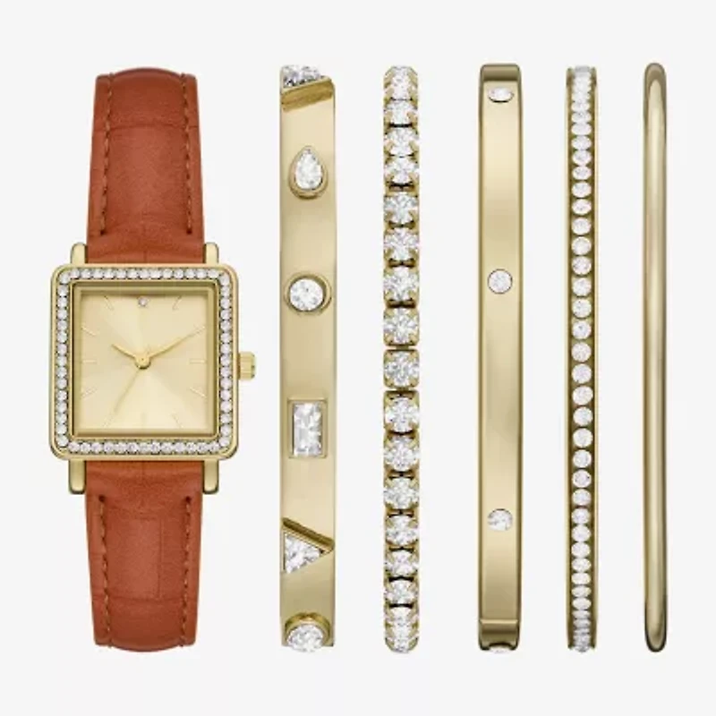 Womens Crystal Accent Brown 6-pc. Watch Boxed Set Fmdjset368
