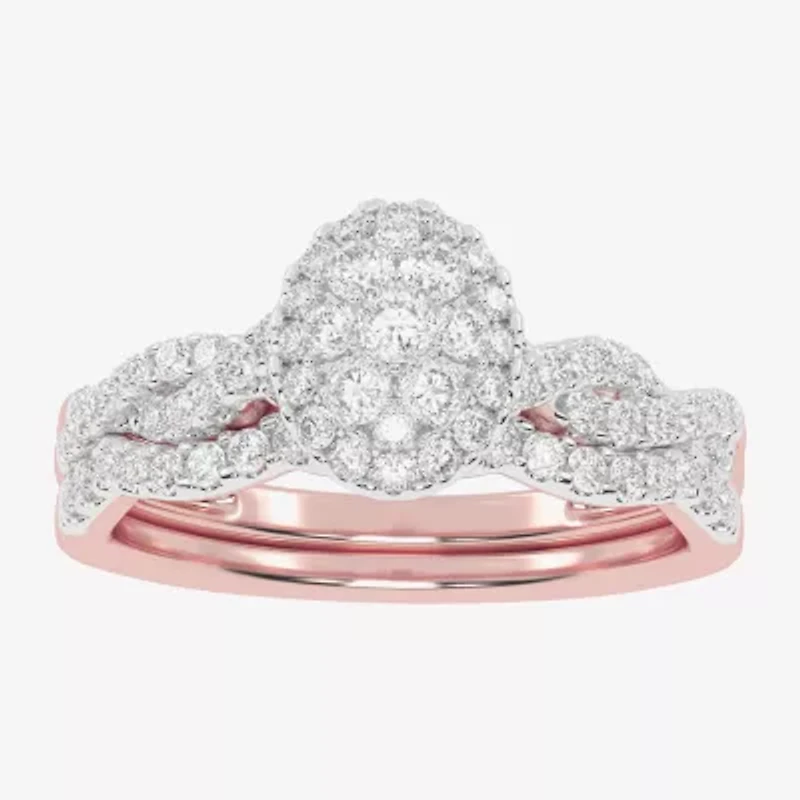 Womens / CT. T.W. Natural White Diamond 10K Gold Oval Side Stone Halo Bridal Set