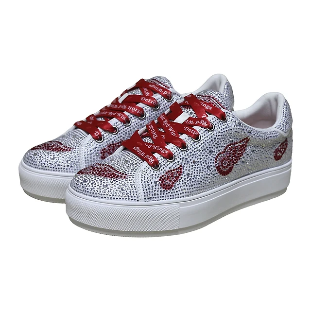 Women's Cuce White Detroit Red Wings Crystal Team Logo Sneakers