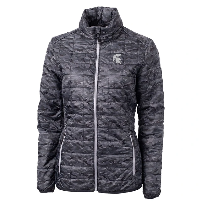 Women's Cutter & Buck Black Michigan State Spartans Vault Rainier PrimaLoft Eco Insulated Full-Zip Puffer Jacket
