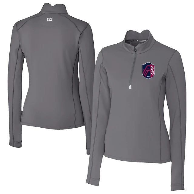 Women's Cutter & Buck Gray St. Louis City SC Traverse Stretch Eco Quarter-Zip Top