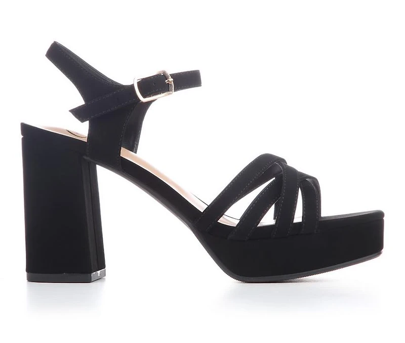 Women's Delicious Loona-S Dress Sandals The Delicious Loona-S is an open-toe platform heel sandal made for dress-casual outfits and nights out. It features slim, multi-strap styling at the front paired with an adjustable ankle strap for a secure feel. A tall block heel and platform base add statement height while keeping the silhouette steady.