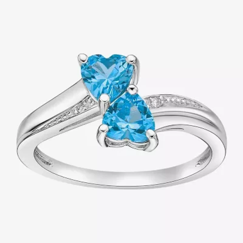 Womens Diamond Accent Genuine Blue Topaz Sterling Silver Side Stone Cocktail Ring