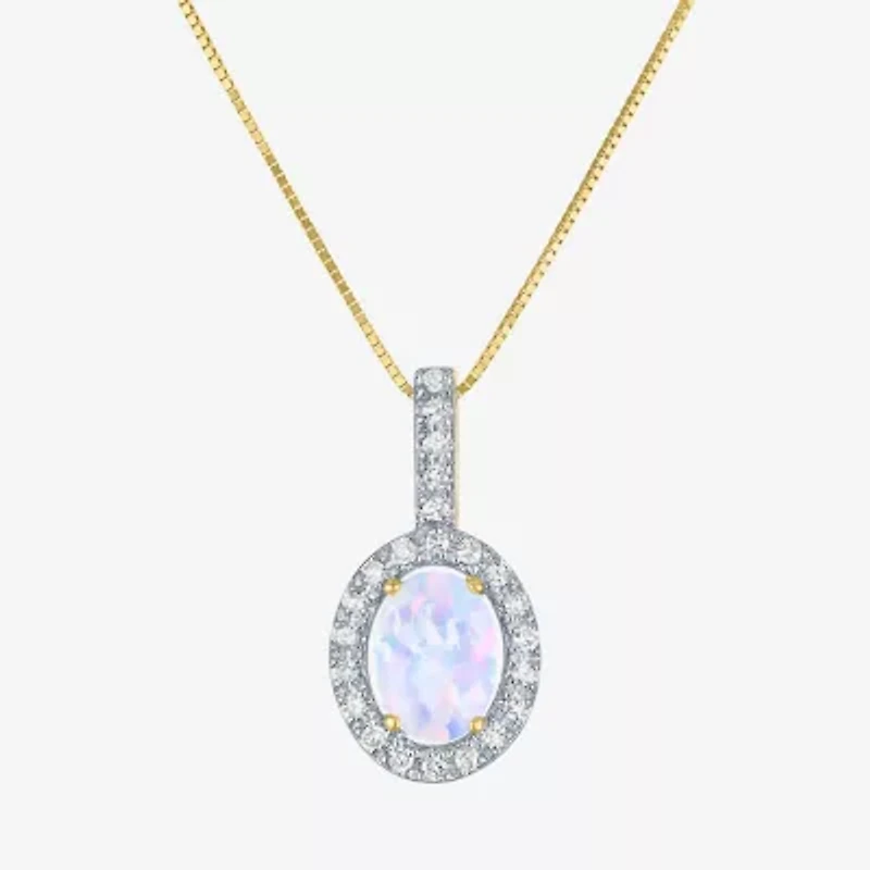 Womens Diamond Accent Lab Created White Opal 10K Gold Oval 18 Inch Pendant Necklace