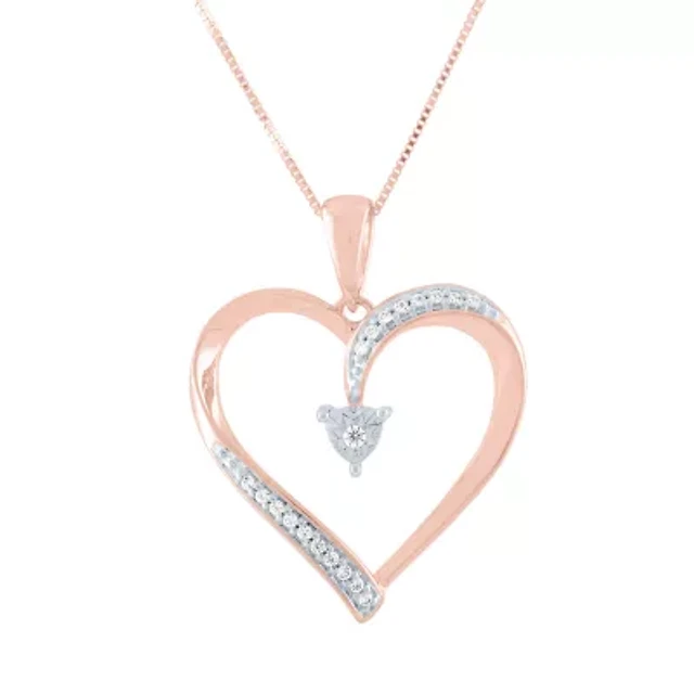Womens Diamond Accent Natural White Diamond 10K Rose Gold Heart 18 Inch Pendant Necklace