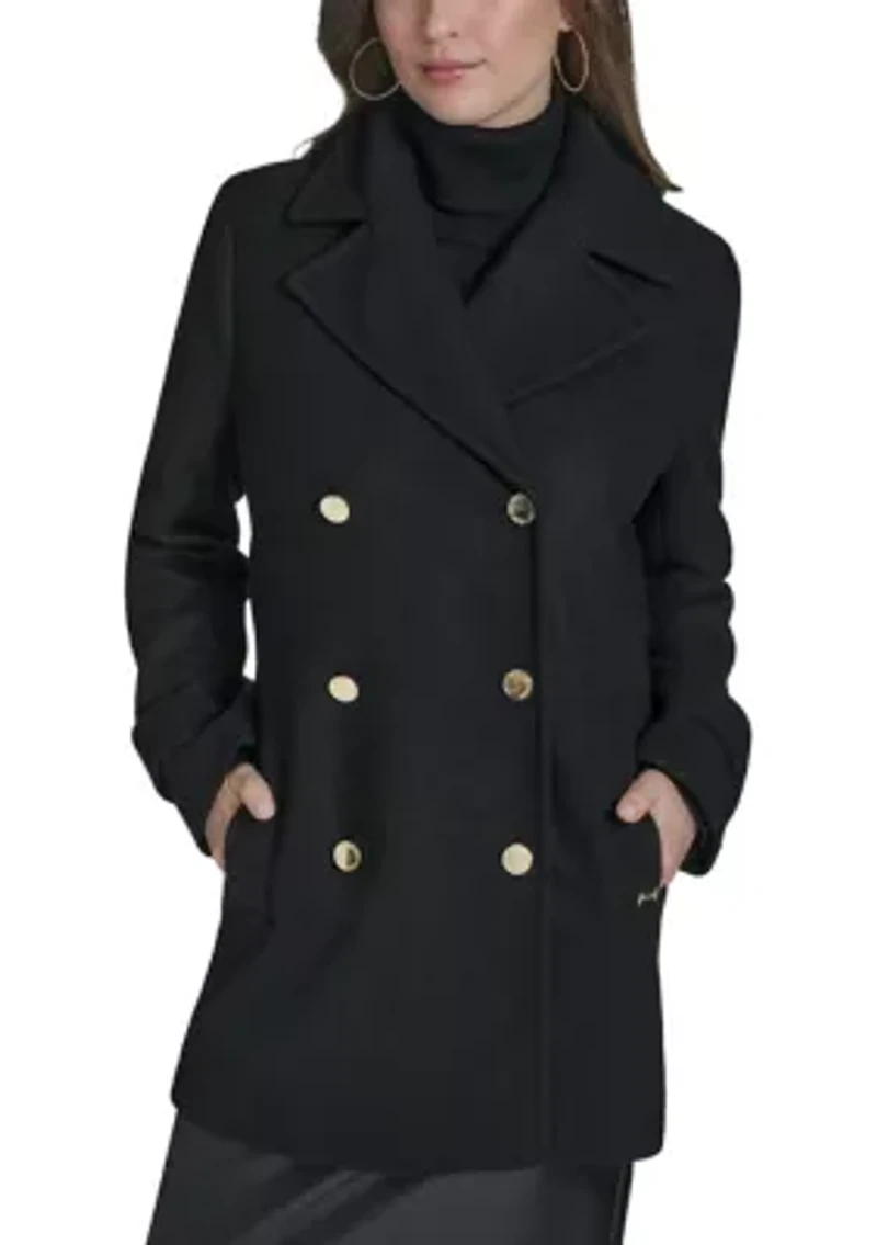 Stay cozy and stylish with this Halston double-breasted coat, the perfect partner for chilly days, combining comfort and elegance for all-day wear. Button closure Notch collar Long set-in sleeves Fully lined Imported Product Specifications 32" L Material & Care 100% polyester Dry clean only